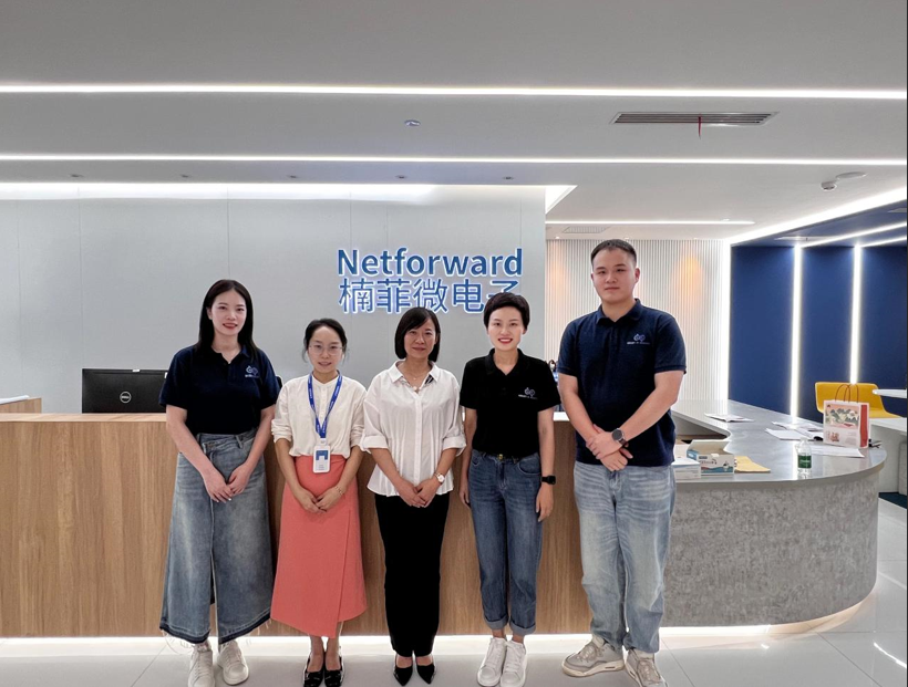 在成都市楠菲微电子有限公司,人事部负责人古菊红充分肯定了计通学院已入职学生学习能力好、动手能力强的优势,与此同时也表达了期望与我院开展更深层次的合作。双方就企业人才需求、行业动态及发展前景等方面展开洽谈。王觊婧表示希望能建立更加广泛稳固的合作、协作关系,共同助推我院毕业生早就业、稳就业。