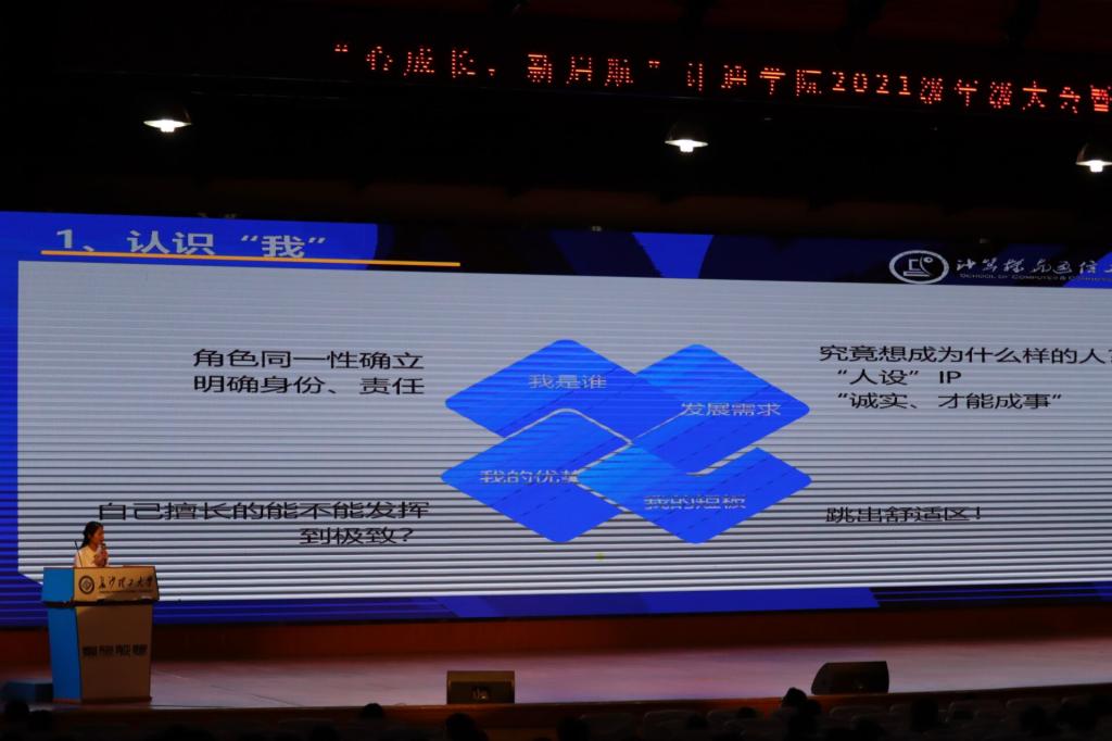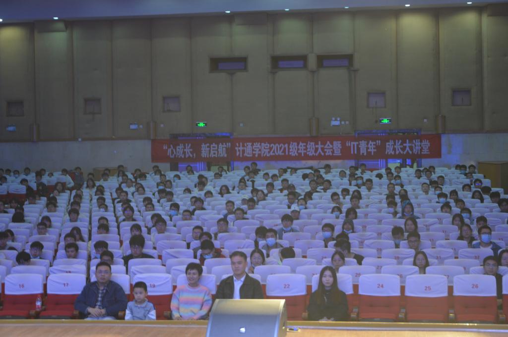 11月13日晚,计通学院在金盆岭校区五教报告厅举行“IT青年”成长大讲堂,党委副书记王觊婧、班主任代表徐梓桑、21级辅导员潘枝花和22级辅导员余泽宇出席,21级全体同学参加。