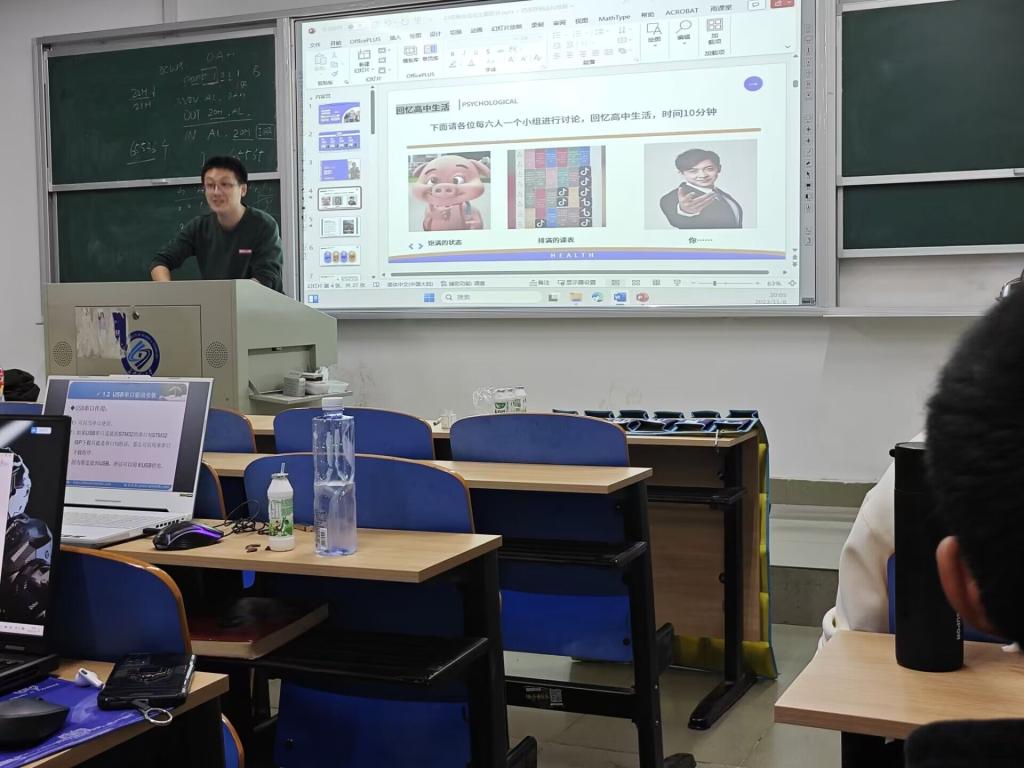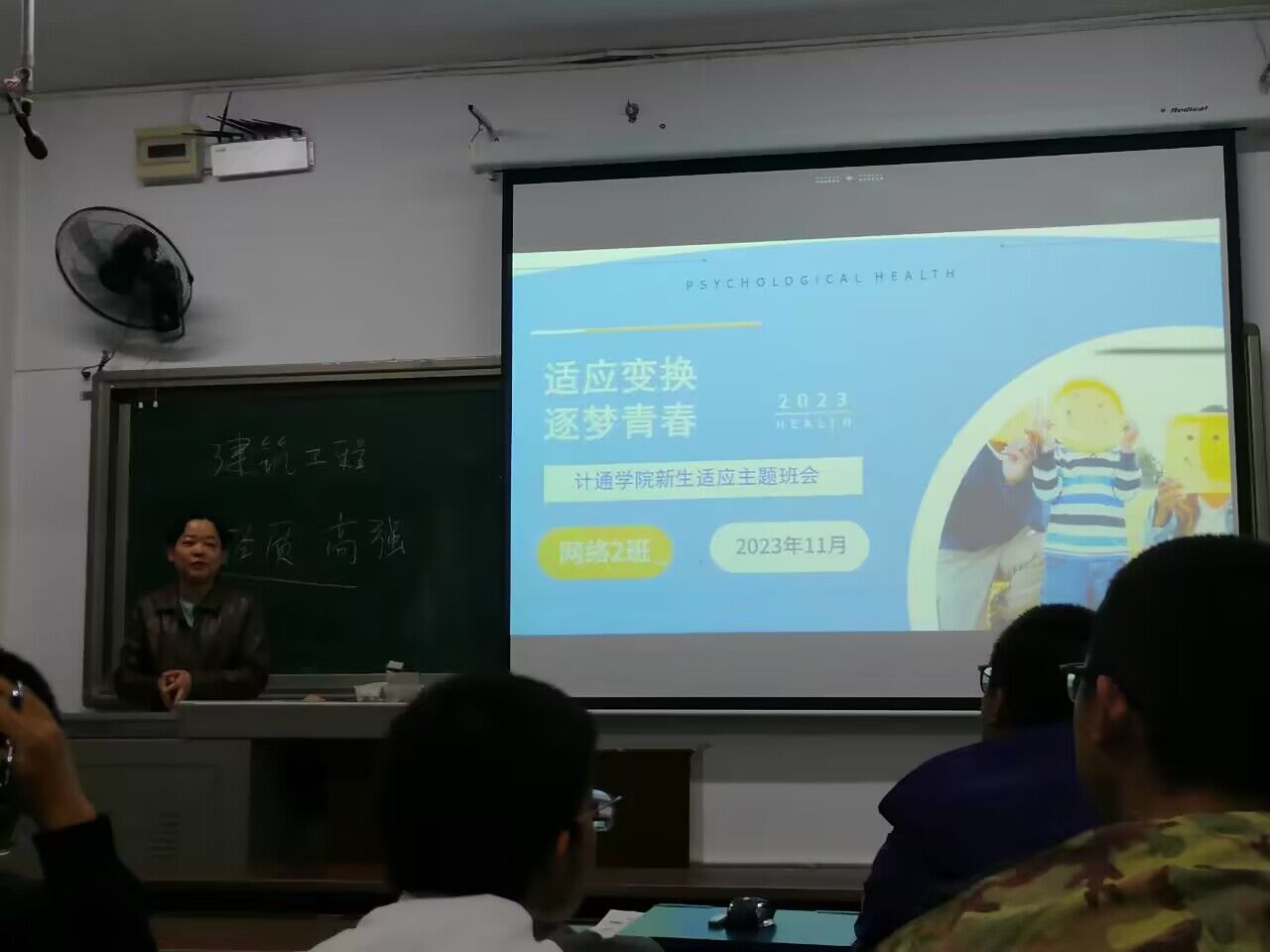 11月8日晚,计通学院组织全体新生在金盆岭13教召开“适应变化,逐梦青春”主题班会。班主任出席,心委主持,各班同学参加。