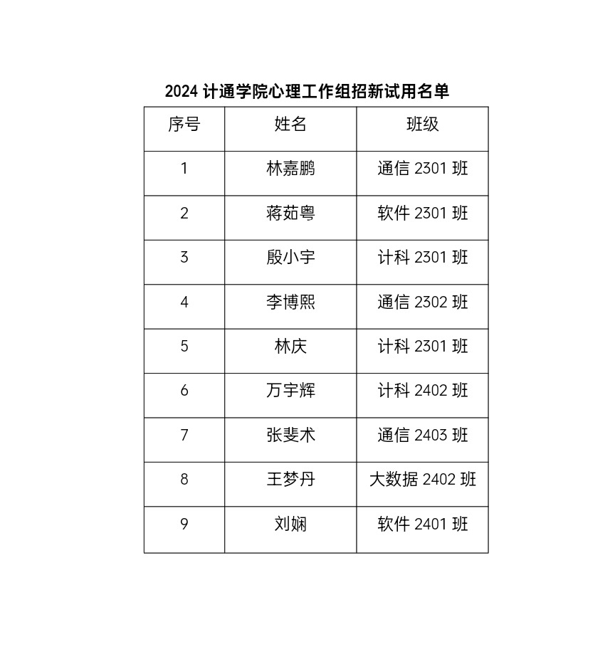 2024计通学院心理工作组招新试用名单公示