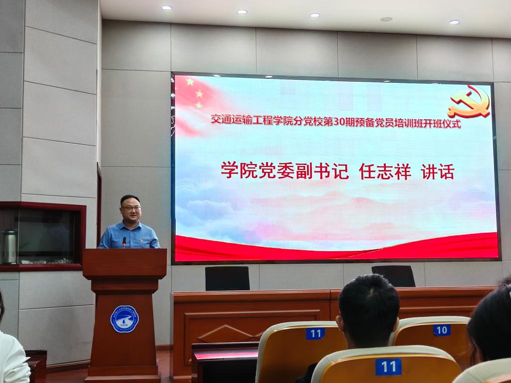 11月10日晚,交通学院分党校于工二交通科技报告厅举行第三十期预备党员培训班开班仪式,院党委副书记、分党校副校长任志祥,分党校秘书彭笠和第三十期预备党员培训班全体学员参加。