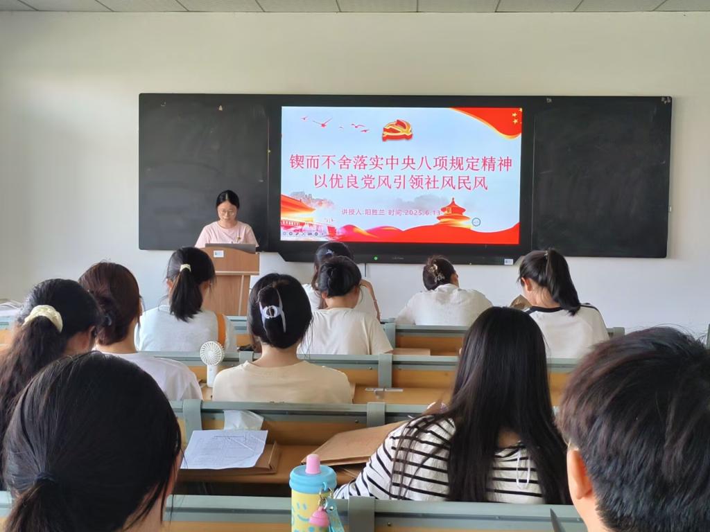 随后,全体党员集中观看党纪教育片《八项规定改变中国》。影片通过历史案例与现实成效对比,展现中央八项规定实施后党风政风的深刻变革。“这部纪录片让我从‘小切口’看到全面从严治党的大格局,作为即将踏入职场毕业生,要牢记党纪不是空洞条文,而是我们在未来工作、学习和生活中的行动指南,指引我们在新的岗位上严守纪律规矩。本科生工管支部颜怡萱如是说。