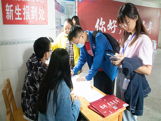 朝气蓬勃的新生陆续到来,迎新志愿者们迅速带领新生前往十教二楼大厅完成报道并领取相关材料,同时引导新生在迎新板前合影留念。随后,迎新志愿者带领新生入住寝室,简单介绍寝室设施,帮助新生适应寝室环境。最后,新生在迎新志愿者的陪同下前往体育馆领取军训用品,并参观校园风景,熟悉校园环境,了解校园文化。此外,为了便于家庭经济困难学生办理入学手续,学院开通了新生入学“绿色通道”使每位有需要的新生能够“温暖、便捷、高效”的完成入学报道。