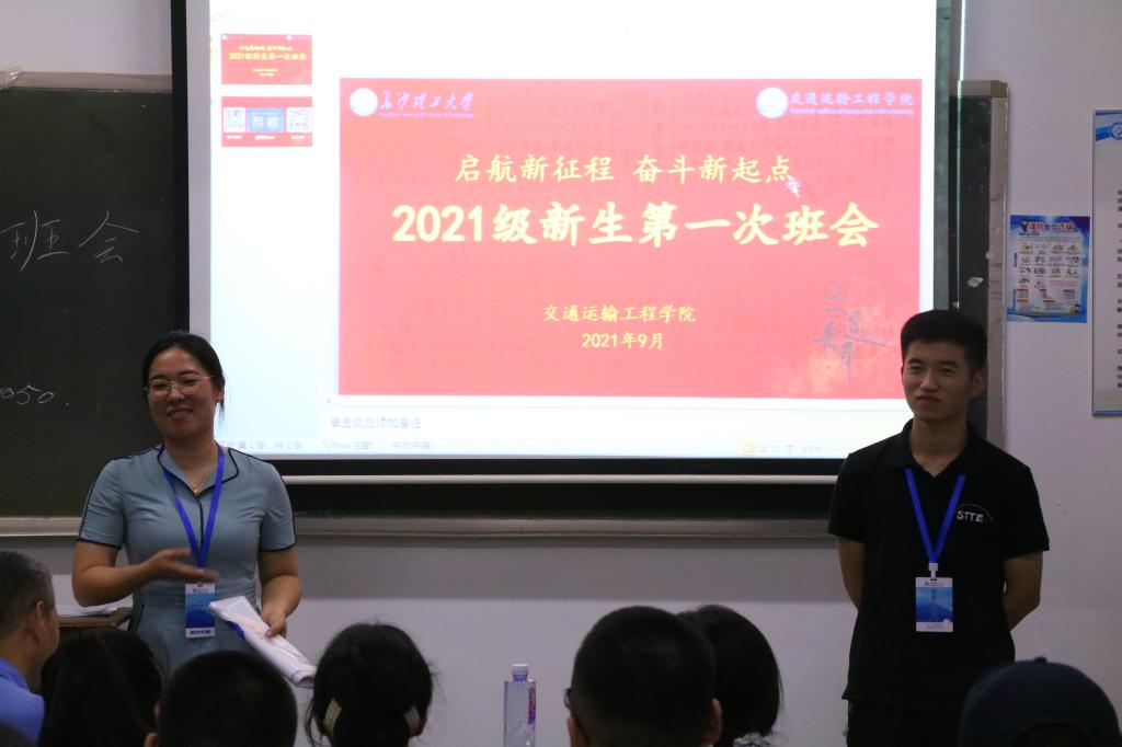 9月7日晚,交通学院各学生班级于金盆岭校区12教召开2021级新生第一次班会,班主任和全体学生参加,下班党员主持。