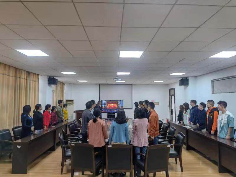 10月9日上午,交通学院全体教师于云塘校区工科二号楼B-413观看辛亥革命110周年纪念大会,全体学生于线上观看。