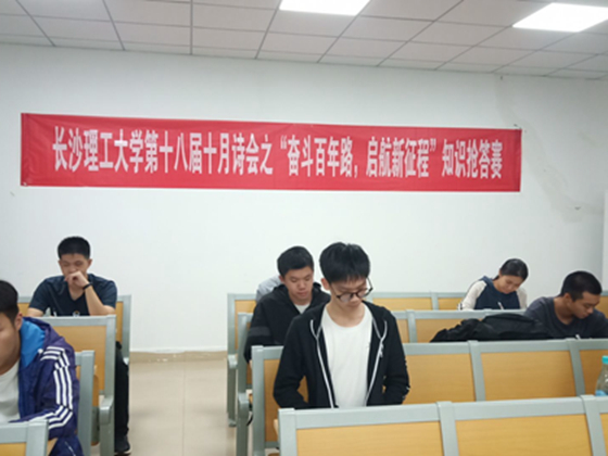 为引导学生关注社会,丰富校园文化生活,拓展课外知识,10月8日晚,交通学院在金盆岭校区十二教和云塘校区工科二号楼、综合教学楼等同时举办了第十八届十月诗会知识抢答赛初赛,本次以“启航新征程”为主题,共计八百余人参加。