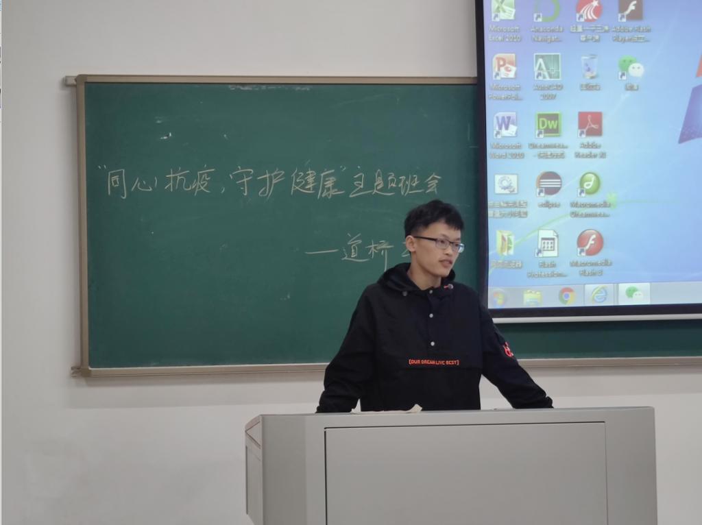10月31日晚上,道桥2001班于云塘校区综合教学楼A-406召开“同心抗疫,守护健康”主题班会,会议由班长陈利瑶主持,班主任王煜坤和全体同学参会。