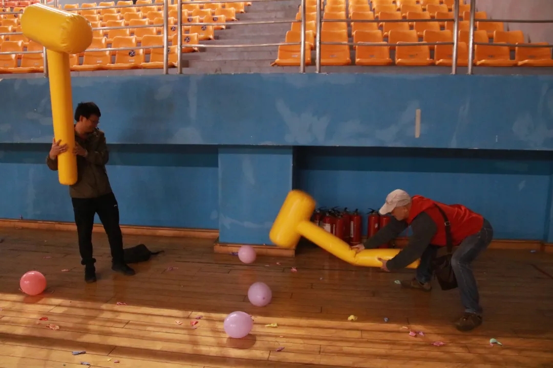 在单人项目中,参加御风飞翔和灌篮高手的选手根据风向和速度,不断地调整扔飞盘和气球的角度和力度,每个人都全神贯注,力争每次都能投进框内。运动会现场气氛欢快,师生们热情高涨、积极备赛,各种趣味运动打破了师生之间的界限,共享趣味运动带来的快乐与激情。场上掌声和呐喊声此起彼伏,各个项目中,教职工们相互鼓励,配合默契,你追我赶、奋勇争先。竞赛的氛围感染着每一个人,现场热闹非凡,一派欢乐祥和的景象。