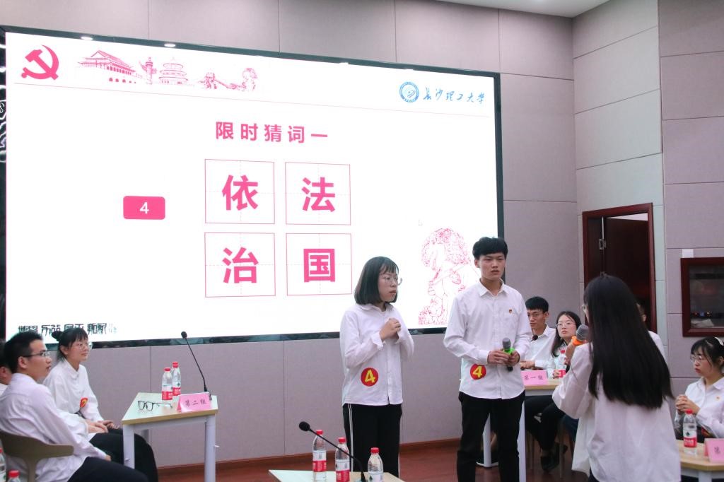 决赛分为两个阶段,采取积分原则,第一阶段得分与第二阶段得分相加为最终成绩,共有6组选手参加。在第一阶段,赛场上精彩的问答点燃了场内气氛,赢得观众阵阵赞叹和掌声。“分秒必争”环节,场上队伍各有战术,紧张激烈的猜词更是将比赛推向高潮。在第二阶段的“一站到底”中,选手沉重冷静,迅速答题。各参赛队伍踊跃答题,各组分数交替上升。在经过激烈的角逐后,先锋队、追寻马克思队、红星闪闪队、爱国爱党队四支队伍不分伯仲,并列获得一等奖;知识小先锋队和星火燎原队分别获得二等奖和三等奖。