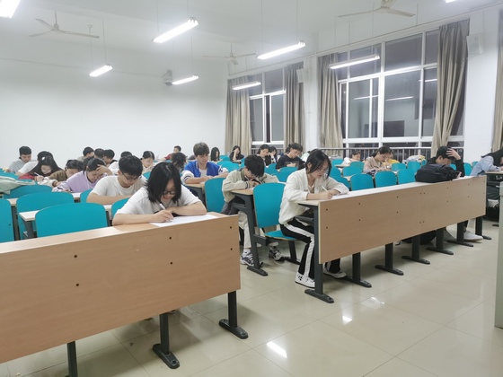 考试开始前,监考负责人引导考生进行竞赛签到,组织考生有序就坐。考试时,采用笔试闭卷的形式,需要同学们独立作答。监考负责人再次强调,要求同学们在考试过程中关闭手机、禁止舞弊,坚守诚信,同时考场外设有巡考人员进行巡考,确保此次考试顺利进行。各位同学也井然有序地等待试卷的下发,认真答题,体现了交通青年真诚守信,抱诚守真的良好品质。考试结束后,监考人员组织考生有序离场,阅卷人员进行现场阅卷,力争做到公开公正公平。