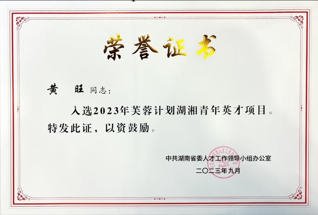 12月8日下午,由省委组织部指导,团省委主办,省青联、省青科协、团长沙市委协办的“智汇潇湘·青沙龙”湖湘青年英才活动在长沙举办,活动现场宣读了2023年芙蓉计划湖湘青年英才项目入选名单,必赢官网2019级博士研究生黄旺同学入选。