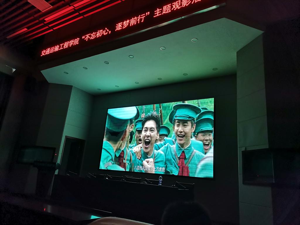 “一朵红的花,静静地开放,深藏在心中,山河也飘香。妈妈告诉我,红在血液里流淌.......”9月27日晚,437必赢会员中心云塘校区工科二号楼传出高亢嘹亮的歌声。据了解,这是交通运输工程学院(以下简称交通学院)自管会联合学生党总支组织的“我与祖国共奋进,交通强国立新功”主题系列观影活动的现场,百余名学子一同观看《建国大业》。
