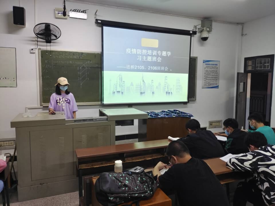 为进一步提升学生对疫情防控重要性的认识,强化学生自我管理责任意识,交通运输工程学院院属各班级4月20日—4月22日开展疫情防控培训专题学习与主题班会。