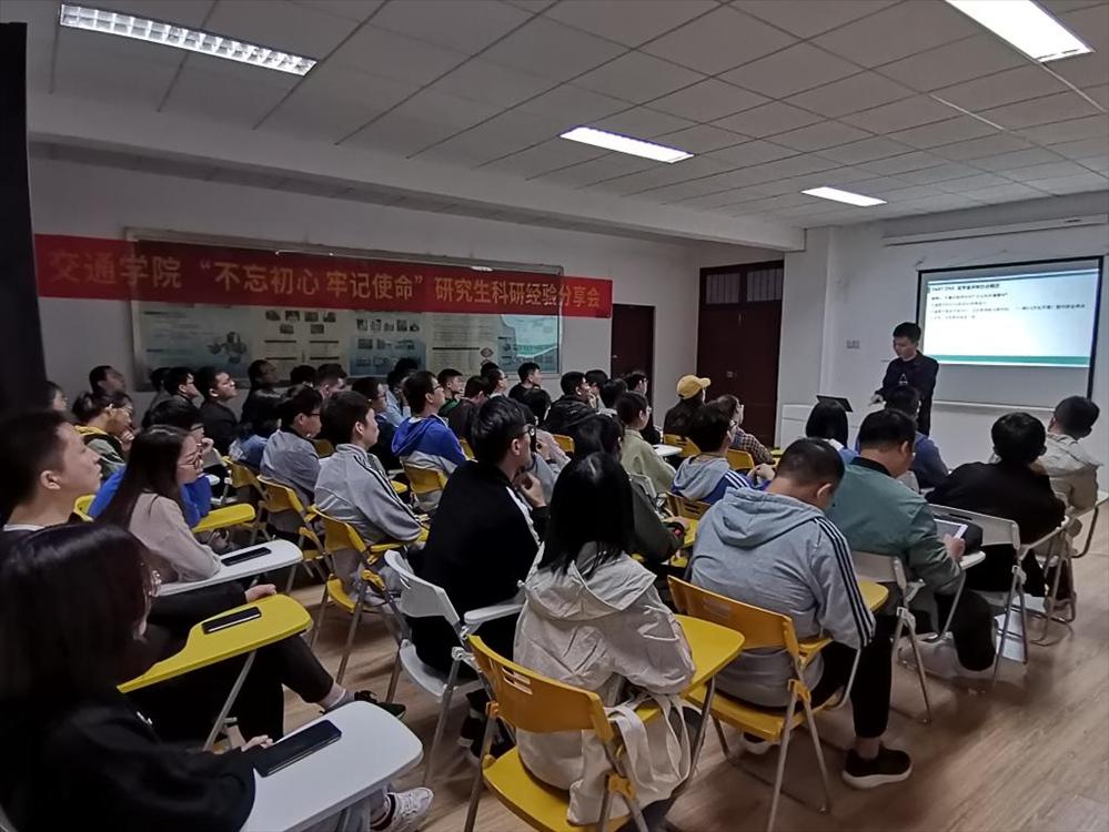 10月18日晚上7点,交通学院在金盆岭校区土木楼2B活动室举行了“不忘初心、牢记使命”主题教育之研究生科研经验分享会。此次活动由交通学院研究生会承办,邀请了2017级硕士研究生刘洋和2018级硕士研究生段开瑞两位国家奖学金获得者主讲,为我院2019级研究生们分享了他们的学习和科研经验。
