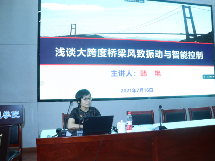 2021年7月16日下午两点半,437必赢会员中心韩艳教授结合其研究领域和方向,作了“浅谈大跨桥梁风致震动与智能控制”的主题授课。