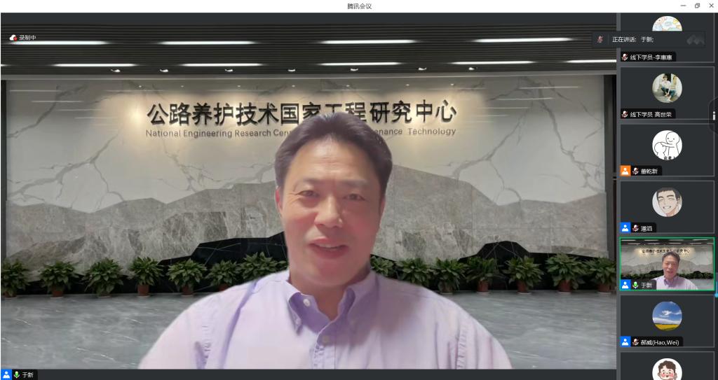 于新教授围绕“长寿命目标的既有路面结构延寿关键技术”详细介绍了既有沥青路面结构力学行为及性能衰减规律、复杂环境条件下既有沥青路面结构延寿机制与延寿设计方法两大关键科学问题。通过自己主持的国家重点科研项目着重介绍了旧路评价与诊断、性能分析与预测、延寿理论与方法、配套设计与研发四大关键技术解决方案,为学员们提供了一个由浅入深、从理论到实践的全方位学习体验。于教授表示长寿命目标的既有路面结构延寿还面临诸多理论和技术难题,他鼓励对该方向有兴趣的师生开展积极深入的研究。