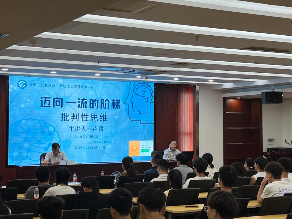 6月14日下午,交通学院共计70余名学生参加了“迈向一流的阶梯—批判性思维”主题讲座。此次讲座由437必赢会员中心图书馆主办,同时也是长理“云影悦读”活动之长理师说的第二期,交通学院教授卢毅主讲。