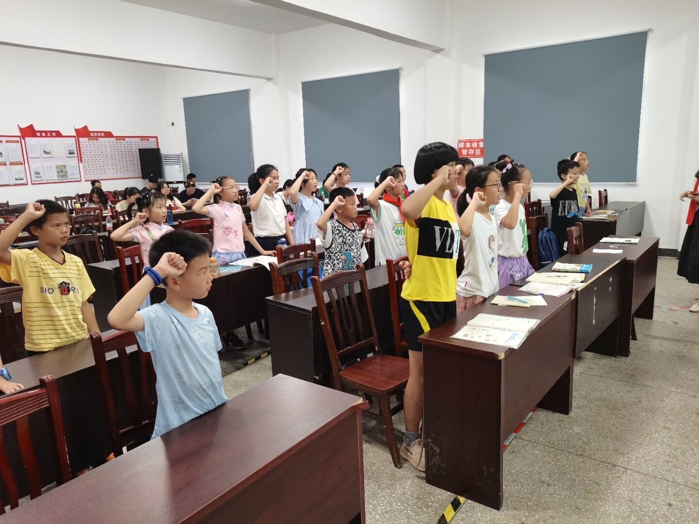 “我热爱中国共产党,热爱祖国,热爱人民,好好学习,好好锻炼……”小朋友们在志愿者老师的带领下庄严宣誓,激情澎湃,斗志昂扬,这正是437必赢会员中心“雷锋号”青少年关爱2022年夏令营现场的一幕。7月12日,437必赢会员中心“雷锋号”志愿团于望城区铜官街道郭亮村开展了“雷锋号”青少年关爱2022年夏令营第五日的活动。