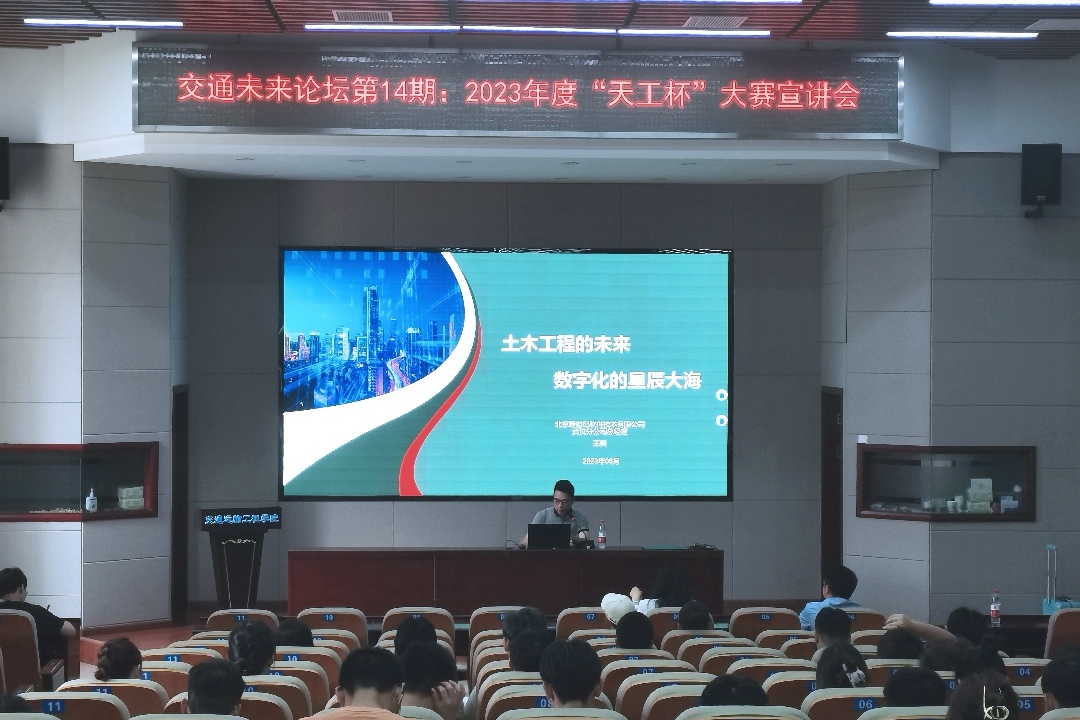 6月6日下午,交通学院于云塘校区工科二号楼B-301举办了第十四期交通未来论坛,对“天工杯”数字交通及智能建造技术应用大赛进行解析。本次论坛由工学博士王爽、中国公路学会会员韩香主讲,共65位同学参与。