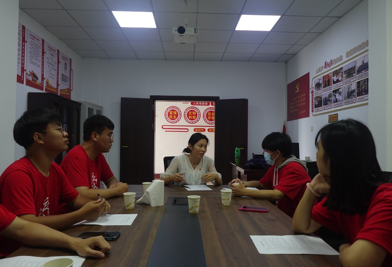 长沙-韶山-娄底(长韶娄)高速公路,东起于长沙市原岳麓主线收费站,西止于娄底市龙塘枢纽,线路全长124.209千米。为深入了解长韶娄高速公路沿线乡村的红色背景文化以及高速公路建成后对村庄发展的影响,实践团首先来到炭子冲村村委会与村团支部书记杨玉萍开展交流座谈会。
