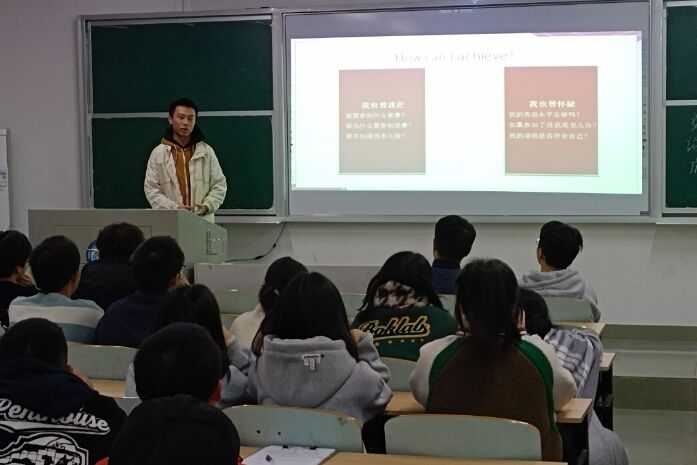 随后,熊冠智分享了他提高英语演讲能力的方法,“学习英语要保持热爱并勇敢尝试,积极参加英语演讲比赛,享受比赛过程中带来的提升与成长”。他建议同学们平时要制定英语计划,及时总结,更好提高英语演讲能力。张思思以“学会走出舒适圈,拥抱未知”为主题,分享了她的英语写作的经验。她建议大家要勇敢尝试、抓住机会、学会总结,还介绍了参与竞赛的渠道以及备赛方法,为想要参加英语竞赛的同学指明方向。
