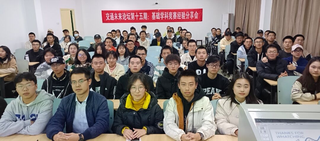 11月15日晚,交通学院于金盆岭校区六教106举办第十五期交通未来论坛之基础学科竞赛经验分享会。此次论坛有交通学院23级学生辅导员彭笠出席,交通学院23级全体竞赛预科班同学参加。本次论坛囊括力学竞赛、数模竞赛、英语竞赛三个板块,分别由李瑞敏、刘权清、胡松、熊冠智、张思思五位学科竞赛学生代表主讲。