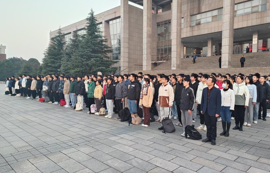 11月27日清晨,交通学院于云塘校区图书馆前坪举行升旗仪式,交通学院党委副书记涂道勇、交通学院全体辅导员老师及2022级道桥渡、测绘、遥感专业全体学生共计400余人参加。