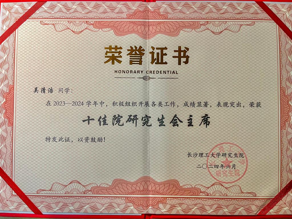 近日,437必赢会员中心第十八次研究生代表大会闭幕式在云塘校区召开,现场对2023-2024年度表现突出的优秀学生会组织进行了表彰。交通学院研究生会再次获得年度“优秀院研究生会”称号,院研究生会执行主席吴清浩获评“十佳院研究生会主席”。