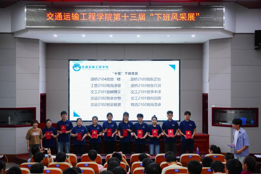 五位优秀下班党员代表分别从思想引领、学风建设、学生工作、日常生活等多方面对下班党员(干部)工作日常进行了展示,樊楼同志在分享中提到,她非常感激并珍惜这段与所下班级同学来之不易的缘分,在担任下班党员期间,是双方互相督促进步、互相成就,希望所有下班都能坚定信仰,引领班级同学们在未来能去更远的地方,走更远的路。此外,在场观众通过两段视频再次走近2023级下班们与班级同学共同成长的一年,在下班们的采访中饱含了对各个班集体深深的情感、归属与责任心,寄托了对同学们的殷切希望。最后,吴滨代表学院对2023级下班党员(干部)一年的工作给予了高度肯定,并为“十佳下班党员”颁奖,任志祥为新一届2024级下班党员(干部)颁发聘书。