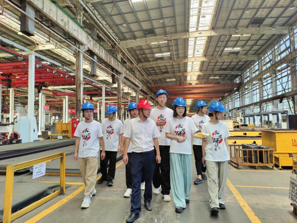 在三一工程师的专业引导下,实践团成员深入无人仓库、零部件铸造与整车装配车间、装备调试车间及成品展示区,亲眼见证了智慧化工厂的震撼场景。高度自动化的生产线、精密协同的工业机器人,让成员们深刻体会到智能制造的魅力。通过实地调研与互动交流,成员们不仅了解到筑路装备的最新技术进展,还深入探讨了绿色低碳转型、人机协同、无人驾驶等前沿议题,进一步拓宽了专业视野。