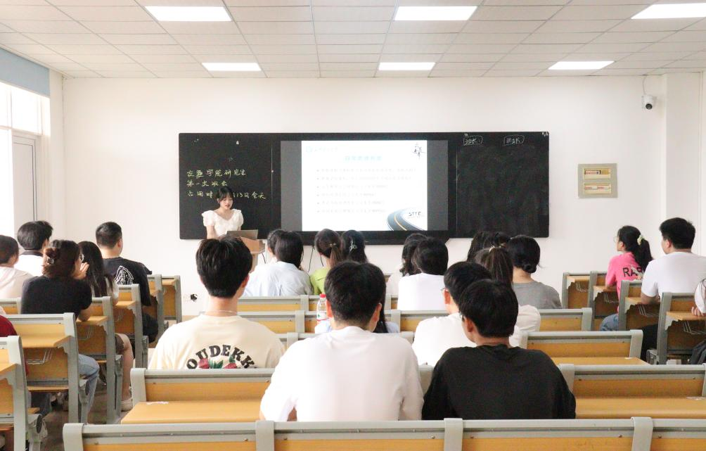 随后,下班干部展示了学校的基本情况,讲解了研究生日常教育与管理制度,介绍了奖学金制度和申请外宿等基本内容,让各位新生对学校和学院的情况有了详细的了解。