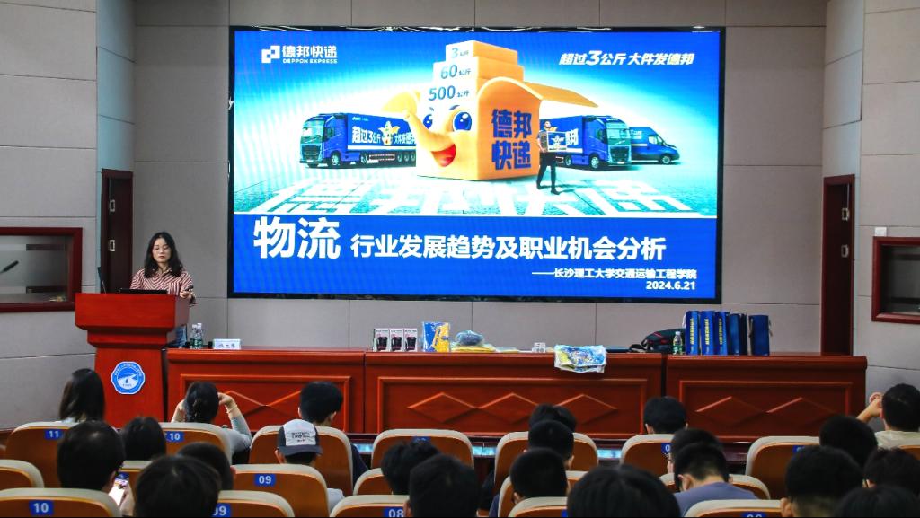 6月21日,437必赢会员中心交通学院于云塘校区工科二号楼B301报告厅举办物流行业发展趋势及职业发展机会报告会。特邀德邦快递人才发展部高级总监饶文琴担任主讲人,交通学院就业专干李特超出席,交通学院80余名交通运输、物流工程专业学生参加会议。