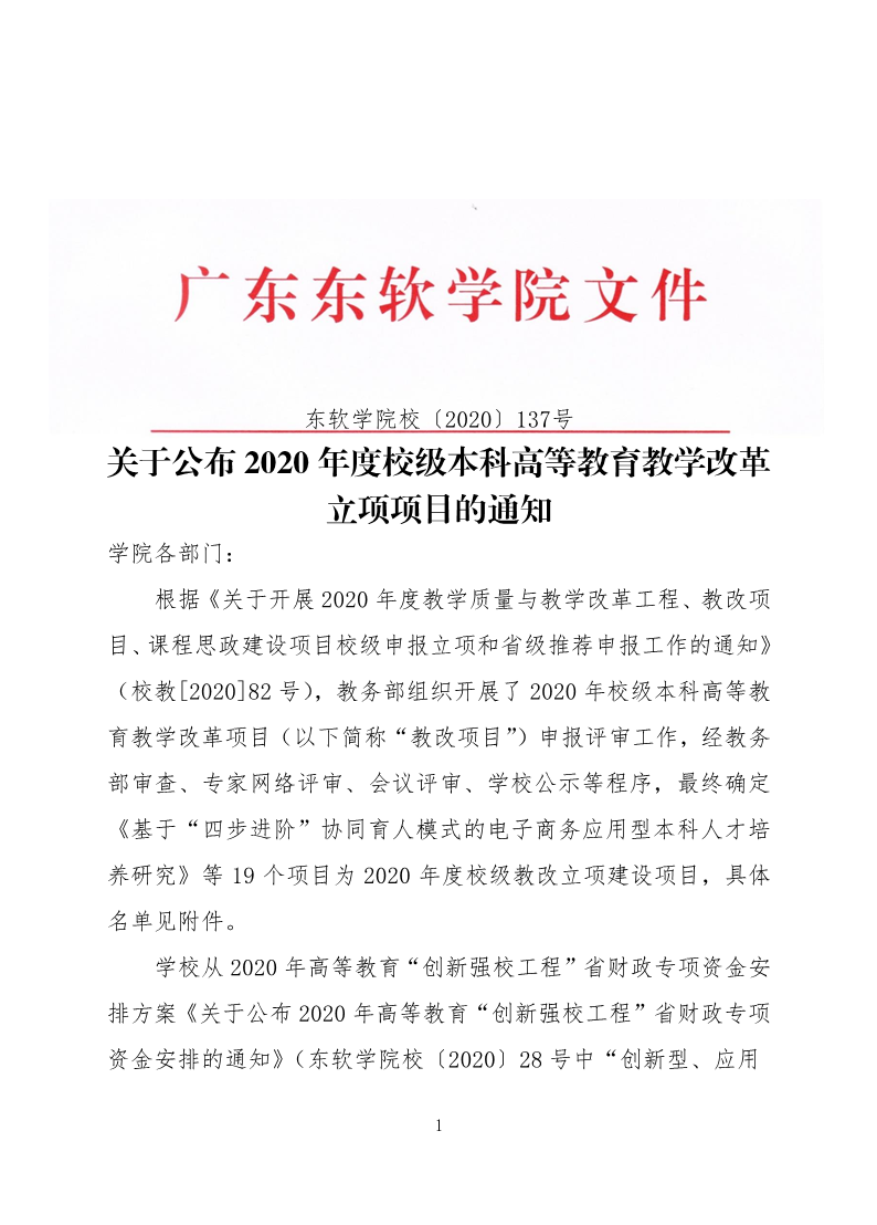关于公布 2020 年度校级本科高等教育教学改革立项项目的通知