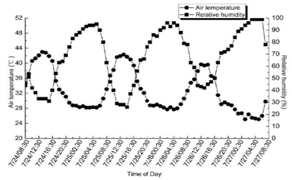 整套系统具有良好的气密性能,反应室内部结构简单,反应过程稳定,数据采集准确度高,控温稳定,能有效模拟室外热环境。