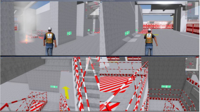 运用BIM可视化漫游技术和高仿真模拟技术,提出精准的高速公路施工安全隐患防范对策。对策研究主要聚焦于以下三个内容:①加强安全教育培训,提高队伍安全操作水平。通过BIM可视化进行公路施工动画展现和虚拟漫游,辅助管理人员高效地进行安全交底和教育培训,使施工人员更易于接受和学习;并通过高速公路信息模型对危险点检查,认知安全隐患进行反馈学习,提升施工人员的安全意识与安全状态,从而提高施工的安全性。②规范落实防护措施,避免安全事故发生。应用BIM技术建立高速公路施工模型,寻找施工安全防护点或防护区域,合理设置安全防护设施,再融入“互联网+”和“大数据”的思维模式,合理铺设安全防护监测感知设备利用BIM的信息承载功能,形成人材机实时通信平台,施工人员可以及时地接受和反馈安全信息,有利于保证自身的生命安全,避免意外发生。③设计应急预案,使损失最小化。基于高速公路施工安全隐患预警体系归纳分析安全隐患与突发事件并对其进行等级划分,借助BIM技术导入人物、环境等相关要素进行可视化漫游,构建安全疏散演练模型和应急援救模型,使项目管理者能够高效地组织安全疏散演练(见图2)和最快地产生应急预案以及施工人员达到最快的解决速度,以至于使损失达到最小化。