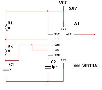 利用555多谐振荡电路将电阻参数转化为频率这样就能够把模拟量近似的转换为数字量,而频率f是单片机很容易处理的数字量,一方面测量精度高,另一方面便于使仪表实现自动化,而且单片机构成的应用系统有较大的可靠性。系统扩展、系统配置灵活。容易构成各种规模的应用系统,且应用系统有较高的软、硬件利用系数。单片机具有可编程性,硬件的功能描述可完全在软件上实现,而且设计时间短,成本低,可靠性高。综上所述,利用振荡电路与单片机结合实现电阻测量更为简便可行,节约成本。所以,本次设计选定以555对电阻进行测量,测量图如图4所示。