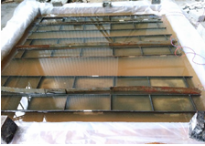 按设计尺寸制作锈蚀槽,将连接工字钢的导线与恒定直流电源阳极相连接,而直流电源的阴极则与溶液中的不锈钢相连接,通过槽内5%的NaCl溶液形成回路,在电流作用下,阳极的试件发生锈蚀。