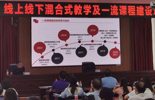 为做好必赢官网国家级、省级一流本科课程申报建设工作,6月15日下午,在一办公楼九会议室,教务处组织举办了一场线上线下混合式教学及一流课程建设培训会。会议邀请了中国大学MOOC华南本地化服务中心负责人孙云武进行专题报告,全校100余名任课老师参加了本次会议,会议由教务处处长陈瑜主持。
