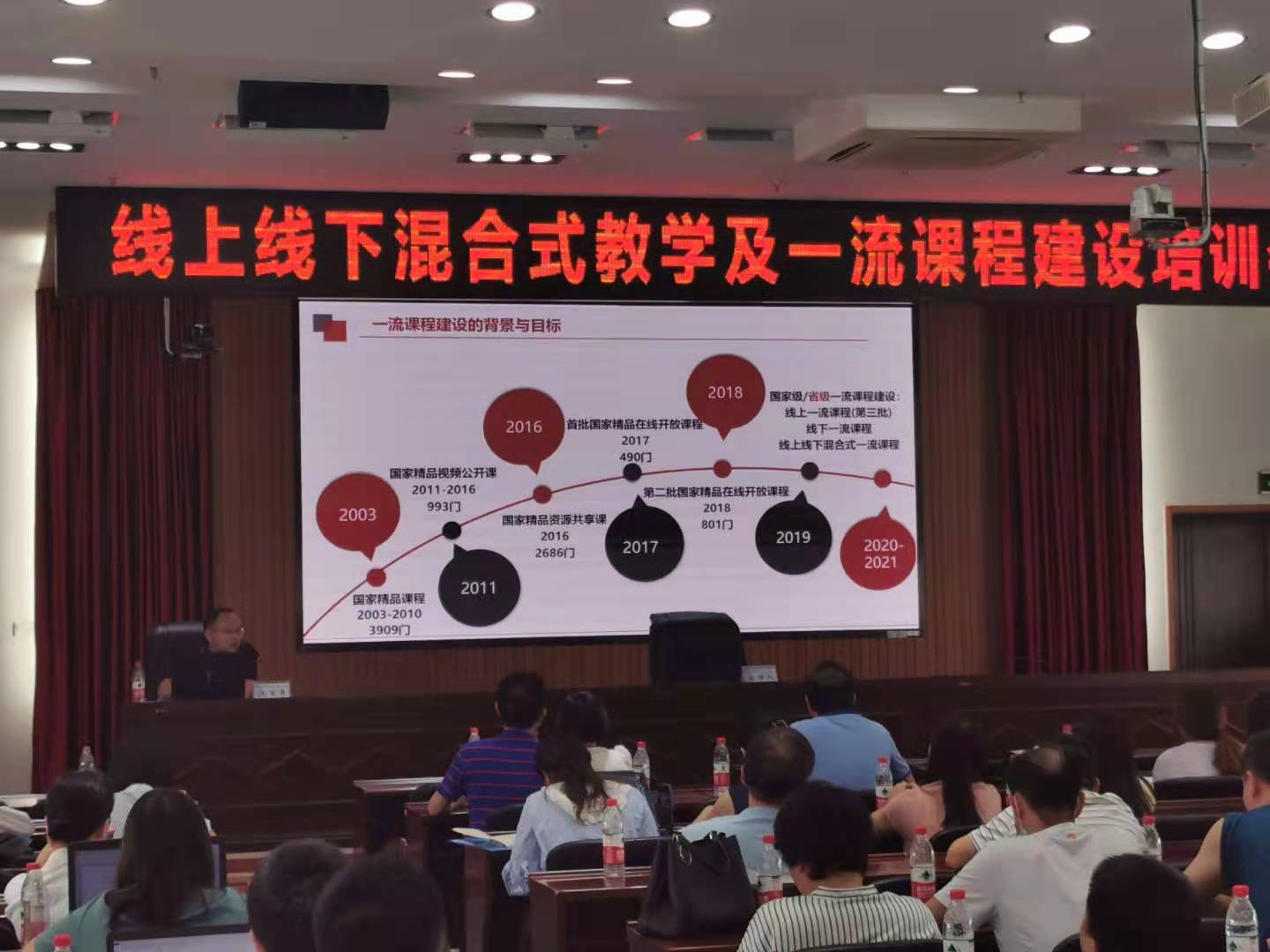 2.聘请了校内外专家进行专题讲座,精细打磨一流课程。本学期共计组织了三场国家一流课程申报专题培训,共计有320余人参加。学校邀请了中国大学MOOC华南本地化服务中心负责人孙云武进行《平台赋能助力混合式课程建设》专题报告;举办了2021年度两期国家一流本科课程建设经验交流暨申报培训会,分类进行指导和经验分享。分享了已获得国家级一流课程(线下一流课程)的刘小燕教授和邓泽林教授申报成功之经验。与获得国家级一流虚拟仿真实验课程的李平教授和刘卫东教授细致的沟通和学习。四位国家级一流课程负责人从建设总体情况及课程特色、政策解读、“两性一度”实现途径、材料准备等方面分享了申报经验。