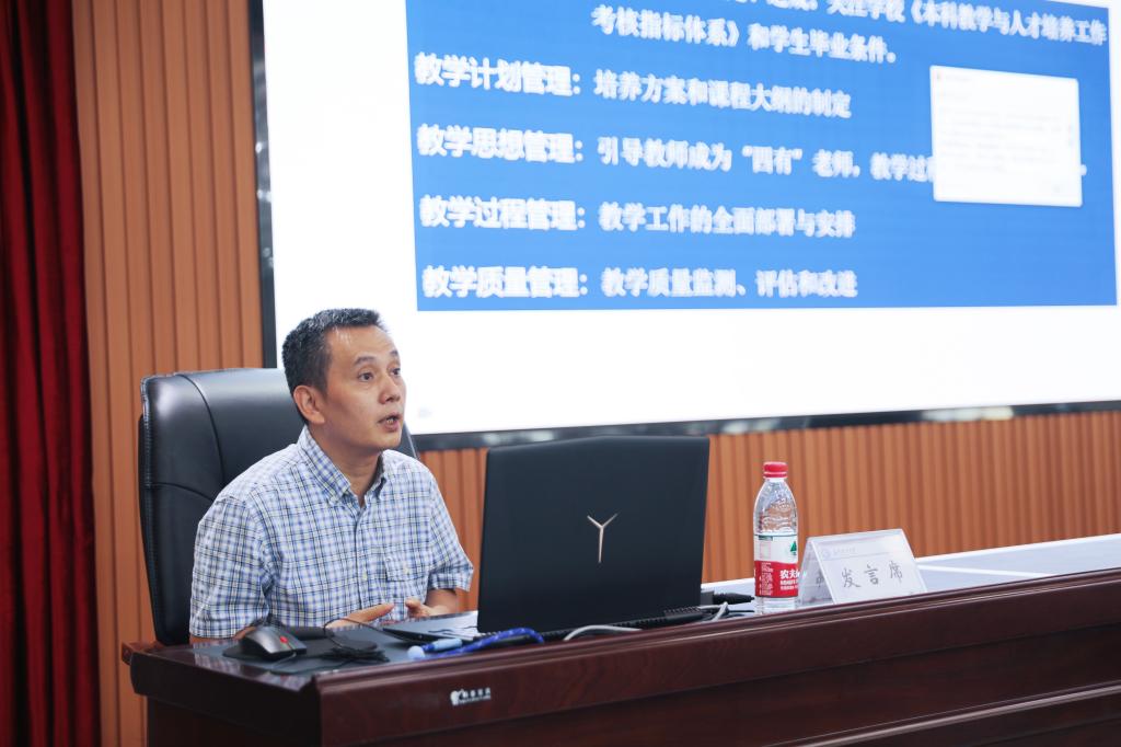 最后,副校长刘朝晖总结发言。刘校长深入分析了国内外高等教育发展趋势,指出在高等教育步入普及化发展的新阶段,新一轮科技革命与产业变革给高等教育改革带来了新的机遇与挑战,同时对高等学校人才培养质量提出了新要求。他指出,本科人才培养任重道远,教学管理人员要加强学习,提高政治站位,充分把握、理解新时代党的教育方针,学习贯彻全国教育大会精神,坚持立德树人;深入了解新高考改革对高校教学的影响与冲击,学习理解新一轮《本科教学审核评估指标体系》内涵。他告勉管理人员要深入调查研究、做好本职工作,正确处理教与学的关系,为实现必赢官网“十四五”发展目标和百强大学建设目标,培养高素质复合型人才努力奋斗、开拓创新。