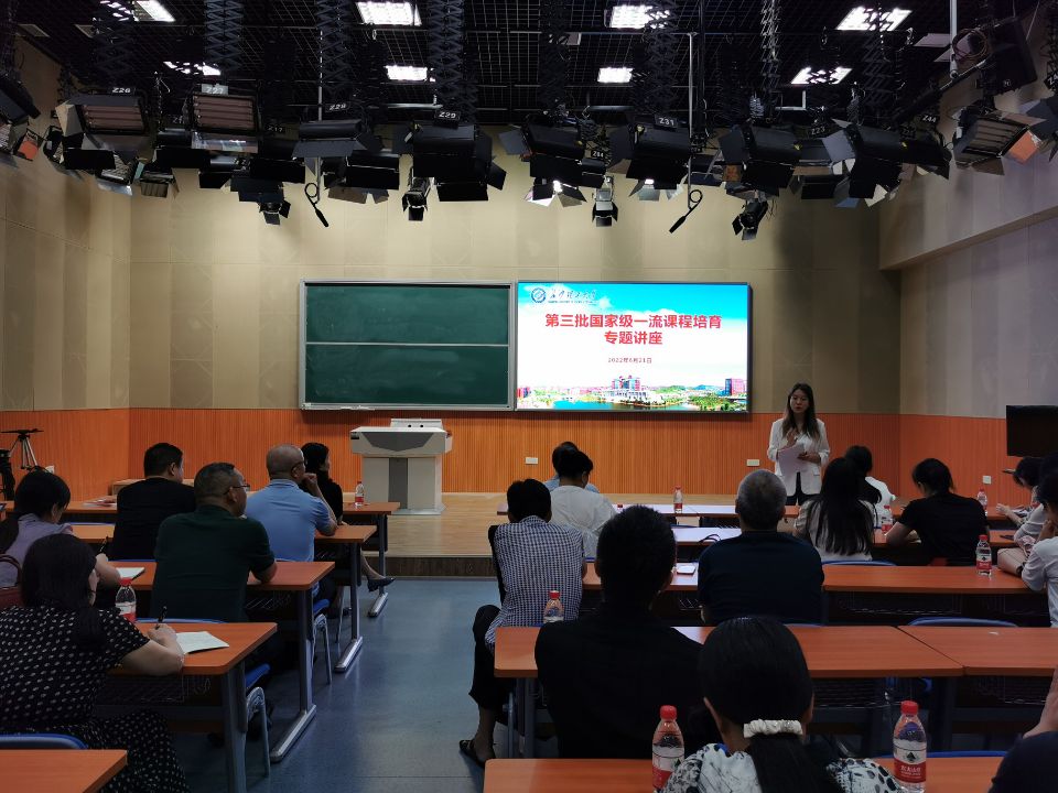 为进一步做好必赢官网第三批国家级一流本科课程培育工作,6月21日14:30分在图书馆三楼演播厅,教务处组织举办了第三批国家级一流课程培育专题讲座。会议邀请了湖南大学赵欢教授、中南大学王一凡教授作专题培训,教务处邓丰副处长出席,必赢官网获评的40门培育课程的课程负责人及团队成员参与了讲座。