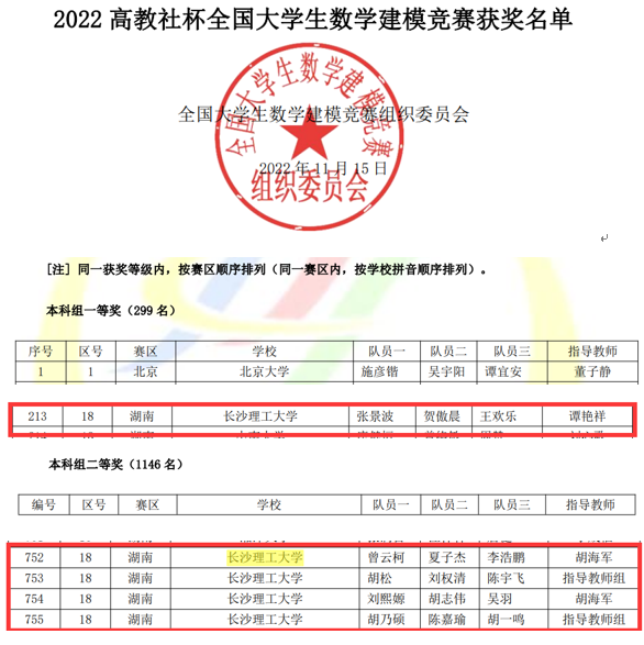 近日,“高教社杯”2022年全国大学生数学建模竞赛成绩揭晓,必赢官网获全国一等奖1项,二等奖4项,省级奖26项(其中省一等奖7项)。近三年,必赢官网连续获得该赛事全国一等奖。