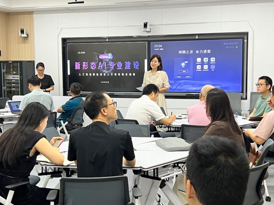 随后,专家围绕“新形态AI专业建设”的核心议题,深入剖析了人工智能技术在高校教育中的应用前景,深入浅出的讲解了专业、能力、价值知识图谱的建设理念和实施路径,分享了天津大学、武汉大学等国内知名高校的成功案例,最后,就如何构建适应本校需求的专业知识图谱体系、如何利用AI技术优化课程设置与教学方法等议题与参会人员展开了深入探讨。