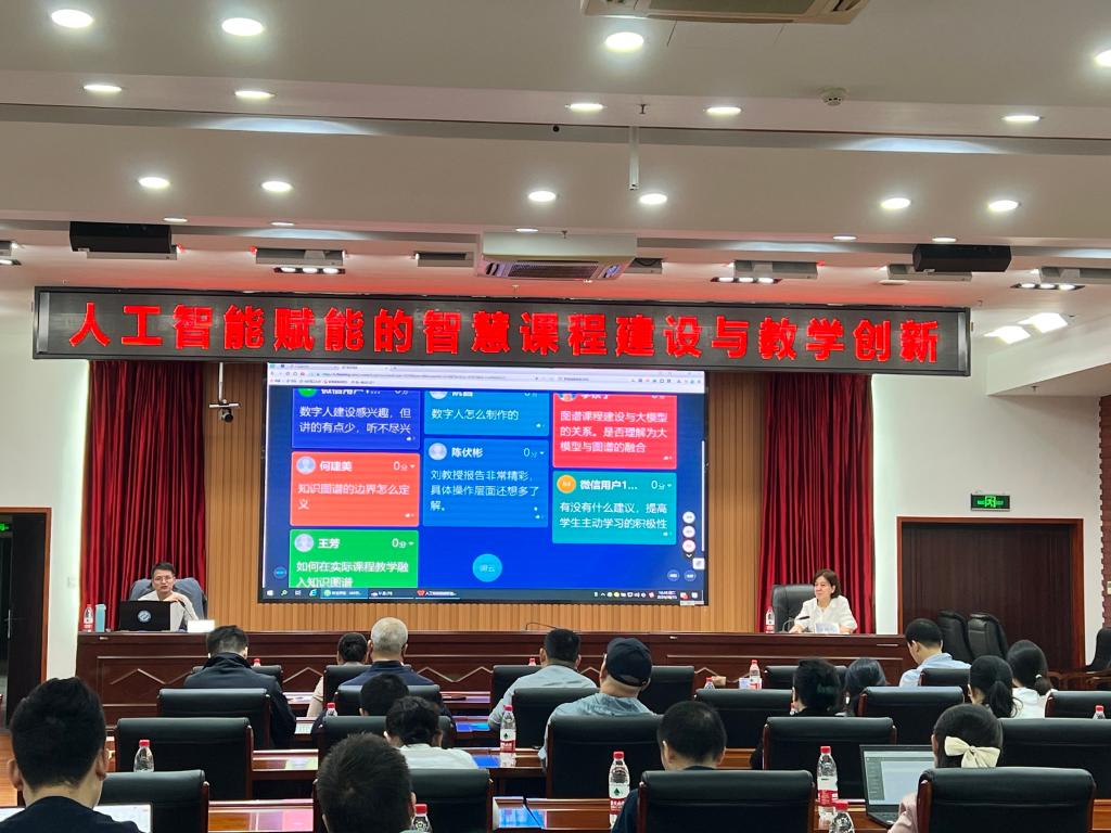 在讲座中,刘强教授深入浅出地阐述了人工智能技术在教育领域的应用前景,以及如何通过智慧课程建设来提升教学质量和效率。他结合具体案例,分享了人工智能技术在课程设计、教学实施、学习评估、课程知识图谱建设等方面的应用,为参会教师们带来了全新课程建设思路。