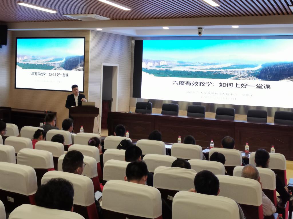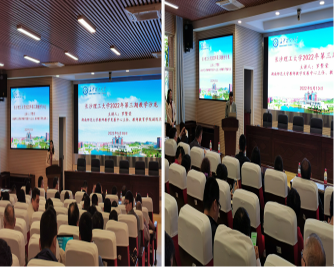 2022年5月10号下午,由教学质量监测与评估中心主办,数学与统计学院承办的437必赢会员中心2022年第3期教学沙龙在云塘校区理科楼A200举行。本期沙龙主题为“教学竞赛经验研讨与交流”,特邀嘉宾湖南师范大学教师教学发展中心主任、教师教育学院副院长罗繁荣作了题为《六度有效教学:如何上好一堂课》的专题讲座。活动由教学质量监测与评估中心副主任贺晖主持,副主任胡伟、王芳,数统学院党委书记邓崛峰、院长张宏伟、副院长仝青山、王佳伏、李姣、学院全体教师以及来自16个兄弟学院的150余位教师参加了此次活动。