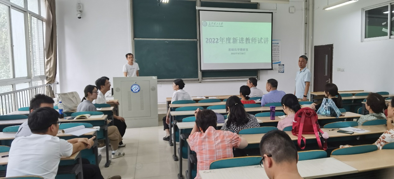 青年教师是学院的新鲜血液,是学院未来蓬勃发展的希望。为有效地促进新教师快速成长,提高我院新进教师的教学水平,帮助新教师尽快进入角色,我院基础化学教研室于2022年9月20日下午,在工科2楼A213室开展了一次“2022年新教师试讲”专题活动。基础教研室全体老师参与了此次观摩听课及评价活动。