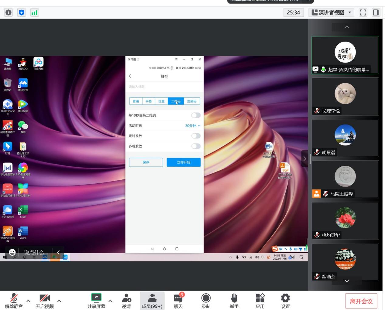 其次,超星公司技术人员详细讲解并演示了超星系统的操作方法,讲解和演示的内容主要从两方面展开,一方面是任课教师的账号注册与登陆;另一方面是任课教师如何发布签到信息。同时,超星公司技术人员将系统的操作方法做了全程录播,便于任课老师反复查看。