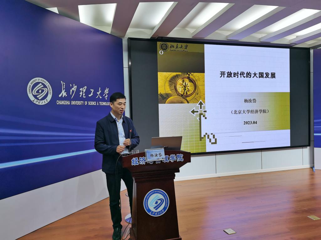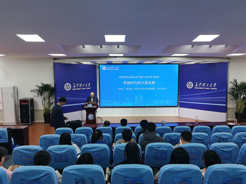 4月25日下午,北京大学杨汝岱教授在金盆岭校区十二教200报告厅为我院经济学专业前沿系列名师专题课第三讲开讲,主讲题目为“开放时代的大国发展”。讲座由学院副院长(主持工作)彭新宇教授主持,学院经济类专业青年教师和研究生、本科生近150人参与。