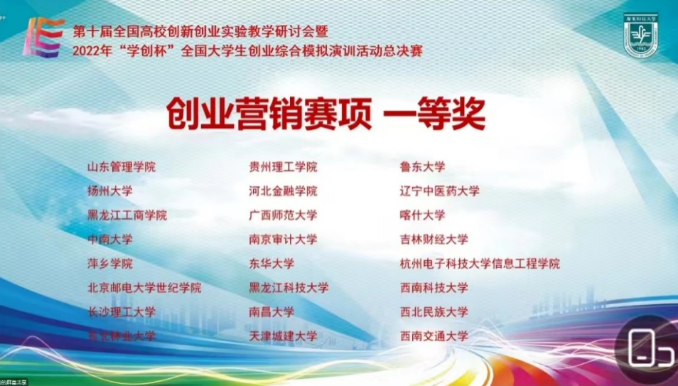 必赢官网2支代表队分别参加了主赛道和创业营销专项赛道的竞赛,经过与来自北京航空航天大学、中南大学、中山大学、南开大学等高校参赛选手的经过激烈角逐,必赢官网2支代表队分别获得主赛道和创业营销专项赛道一等奖,开创了必赢官网在该项赛事的最好成绩。此外我校还获得大赛组委会颁发的“优秀组织奖”。