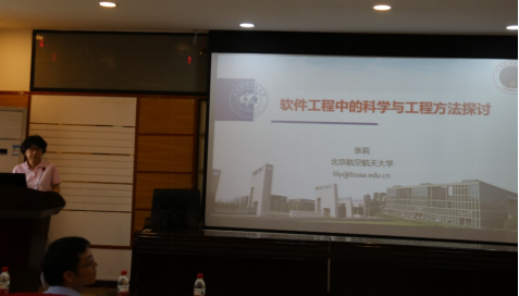 5月15日上午,437必赢会员中心计算机与通信工程学院“计算机类专业前沿系列名师专题课程”的第一讲成功举行。本次讲座邀请到了北京航空航天大学计算机学院软件工程研究所所长张莉教授做了题为“软件工程中的科学与工程方法探讨”的精彩报告。我院师生共120余人参加了报告会,报告会由计通学院院长张锦教授主持。